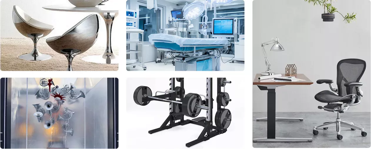 Office furniture, Medical equipment, Hardware and sanitary ware, Guardrail industry,Pipeline industry, Guardrail industry, Office desks and chairs, Fitness equipment