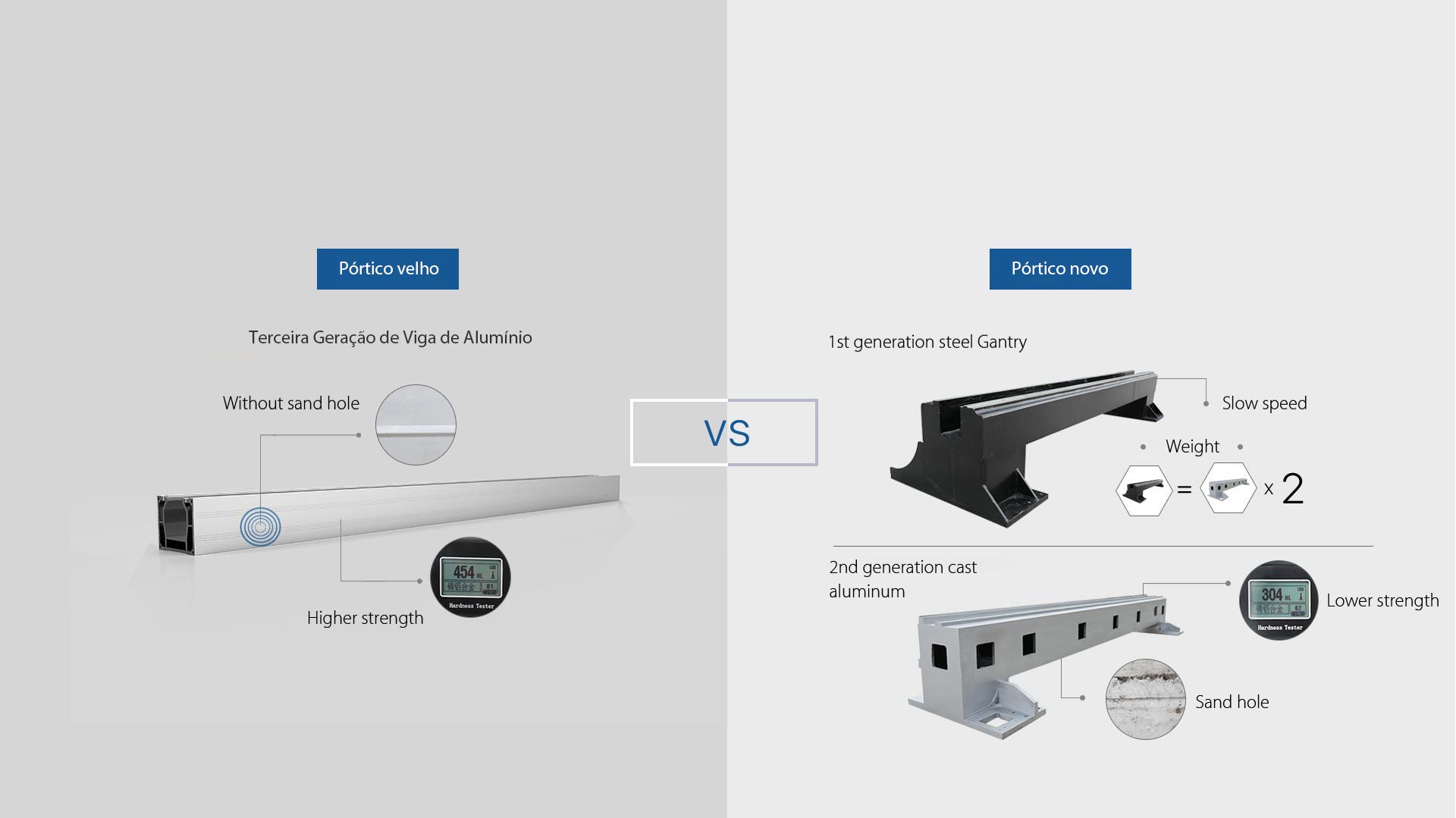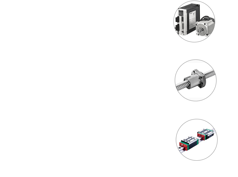 Para evitar a deformação de corte recato causada pela flexão de parafuso do eixo Y, há duas duplos trilhos de guia e dois duplos parafusos em cada lado, isso assegura a linearidade e o arco na operação com alta velocidade
